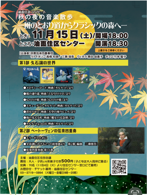 毎年好評をいただいている油面コンサート。今年も目黒弦楽四重奏団をお迎えして開催します。チケットは本日より販売スタートです。皆様のご来館をお待ちしています。