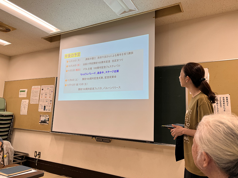 また、今後もチンドン屋さんと学区内を練り歩く企画や記念式典に向けてイベントは盛りだくさんとご報告をいただきました。