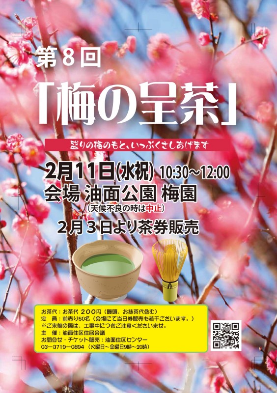 毎年好評をいただいている「梅の呈茶」今年も油面公園梅園にて開催します。